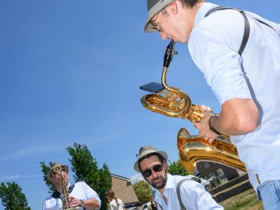 Entre 13 h et 16 h, un groupe de musique mobile assurera l’animation musicale. De Floaters se compose de 3 musiciens énergiques et dynamiques. Laissez-vous emporter par la batterie, le sousaphone et le saxophone ténor et profitez de cette harmonie sonore unique.