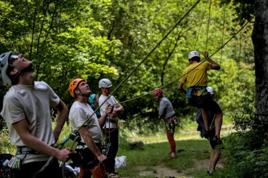 - 24 touwen met aan de muur een brede waaier aan klimroutes van verschillende niveaus