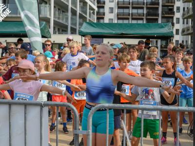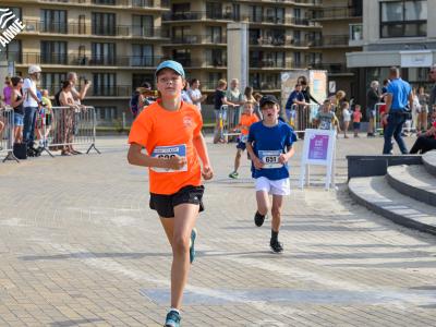 Voor de volwassenen aan de start verschenen, werden om 18.30u meer dan 150 enthousiaste kinderen op het strand losgelaten. Dankzij de leuke muzikale opwarming haalden de deelnemers vlot de finish van de toch wel pittige 1 kilometer lange wedstrijd.