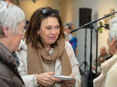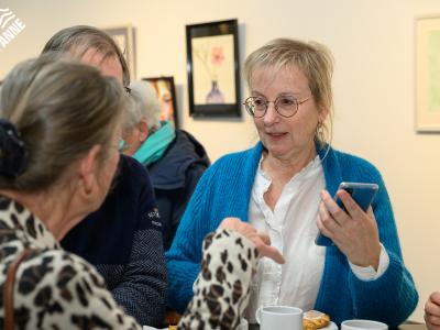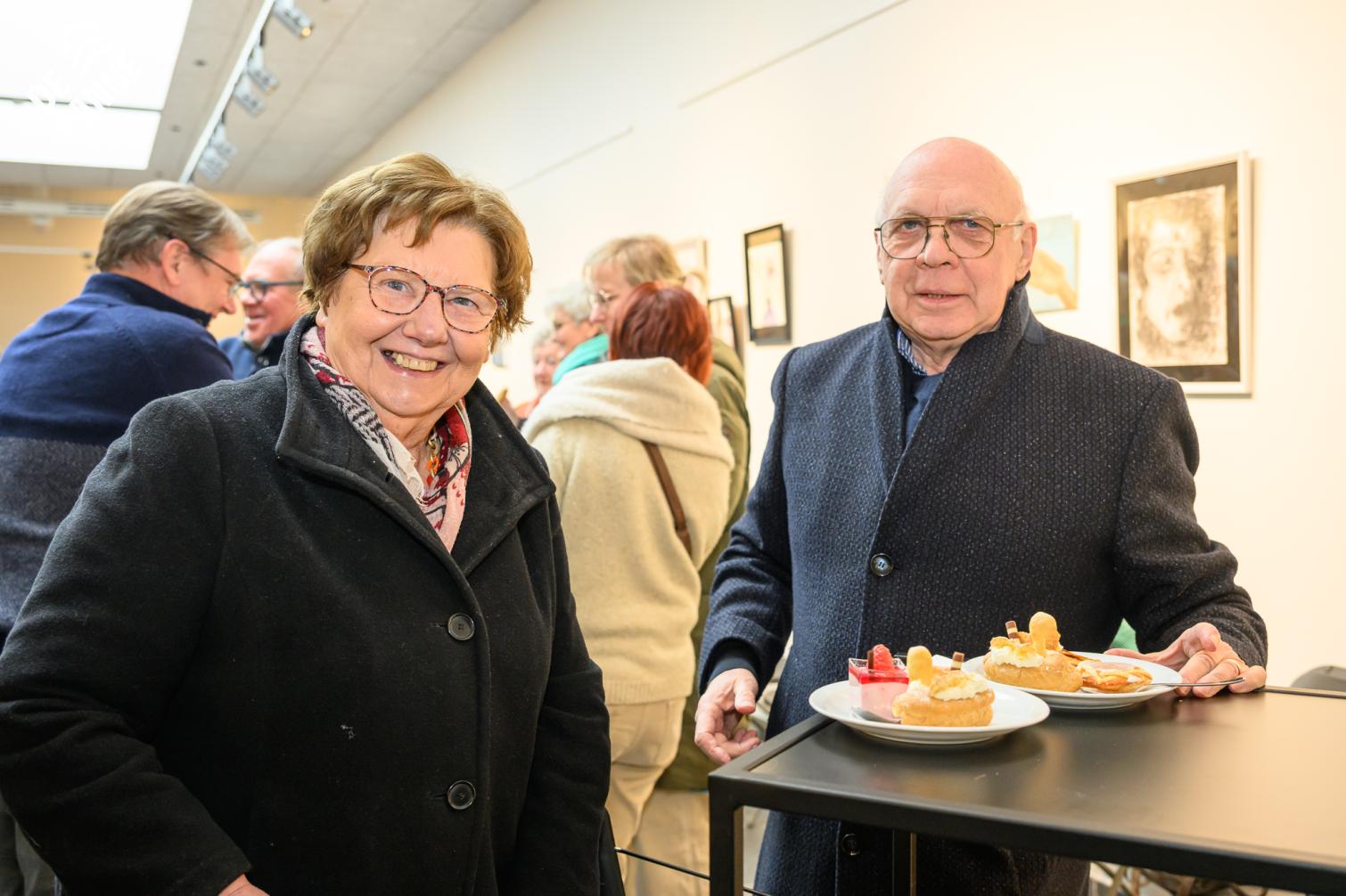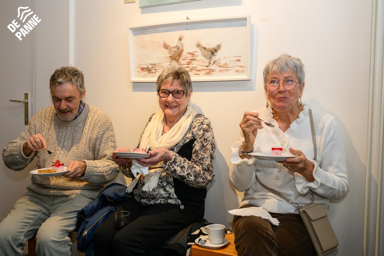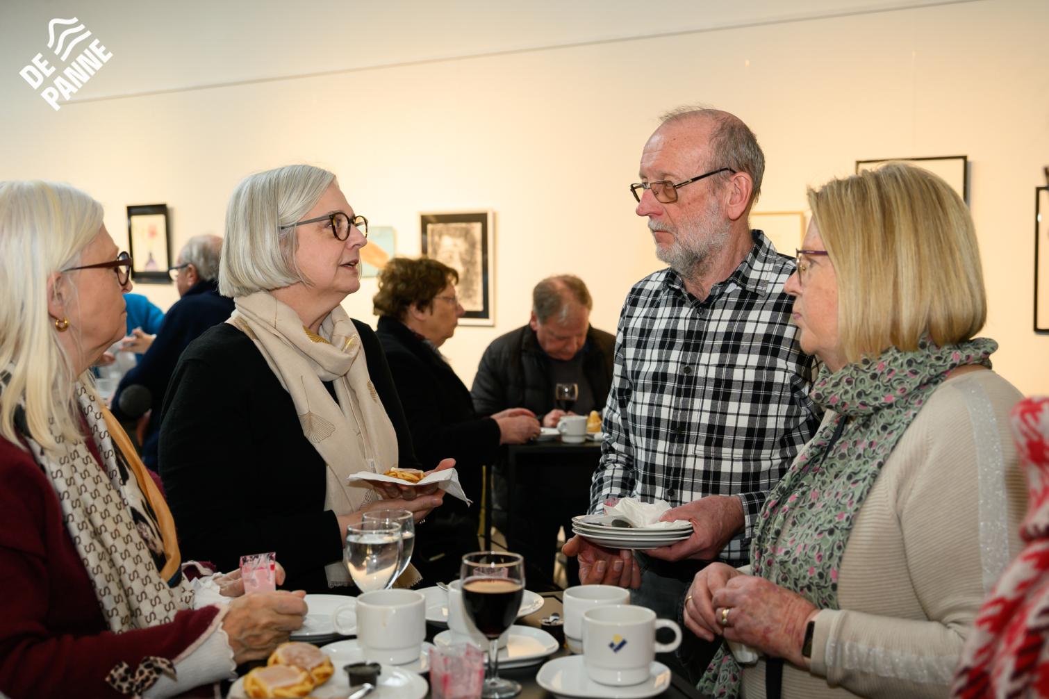 De bezoekers genoten tijdens de opening niet alleen van de kunst, maar ook van een heerlijke koffie en een stukje taart. 🍰