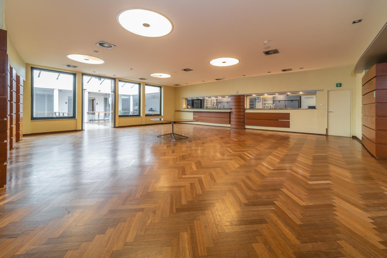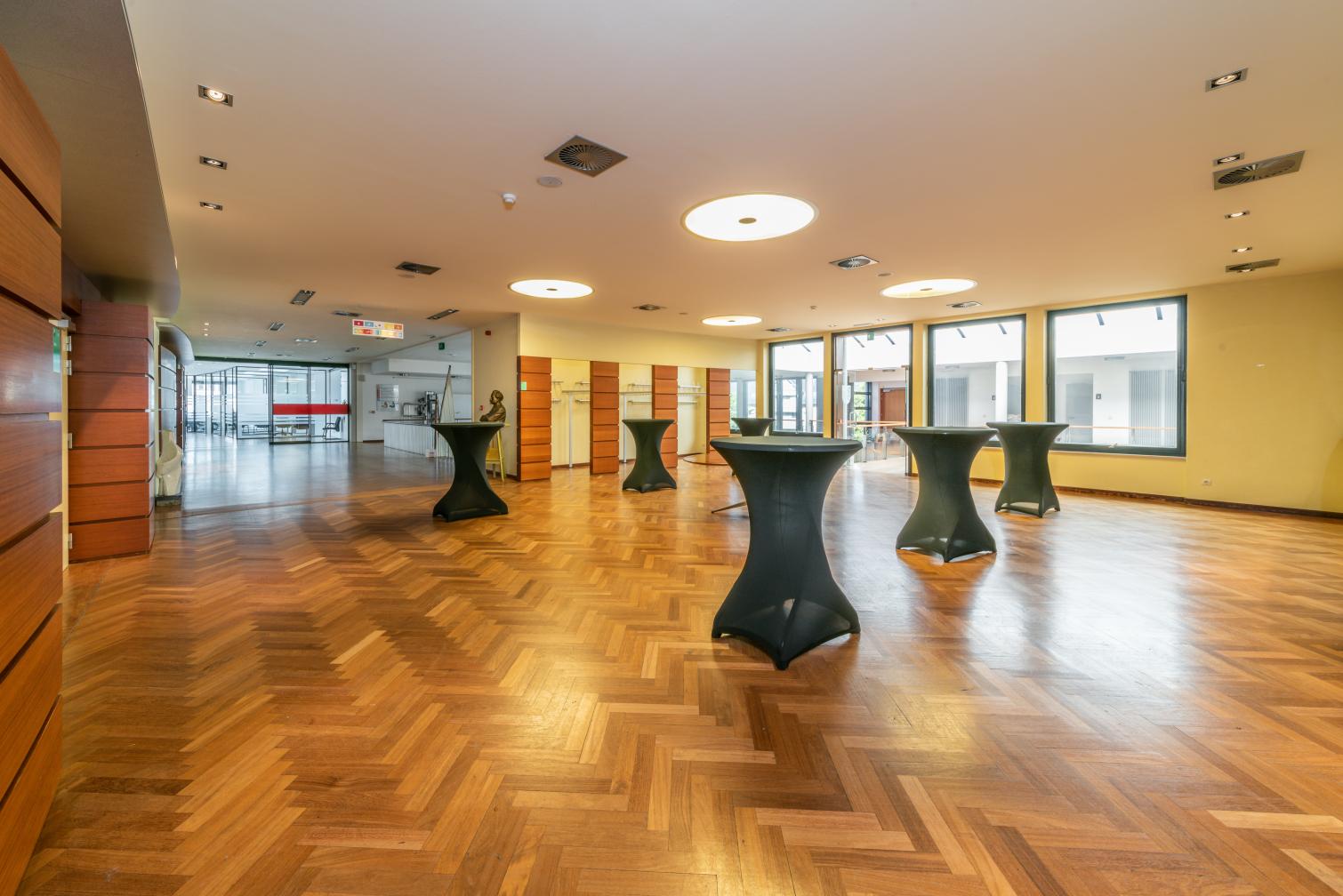 De Feestzaal en Foyer hebben samen een capaciteit van 350 personen.