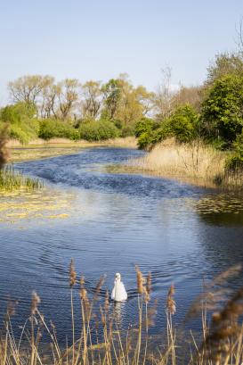 Dit waterrijke gebied was vroeger een oude zandgroeve. Nu zijn de 10 meter diepe putten gevuld met helder grond- en regenwater. Dit is een echt paradijs voor watervogels. Tijdens het wandelen zie je ze gegarandeerd zoeken naar lekkers in en rond het water.