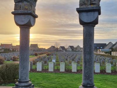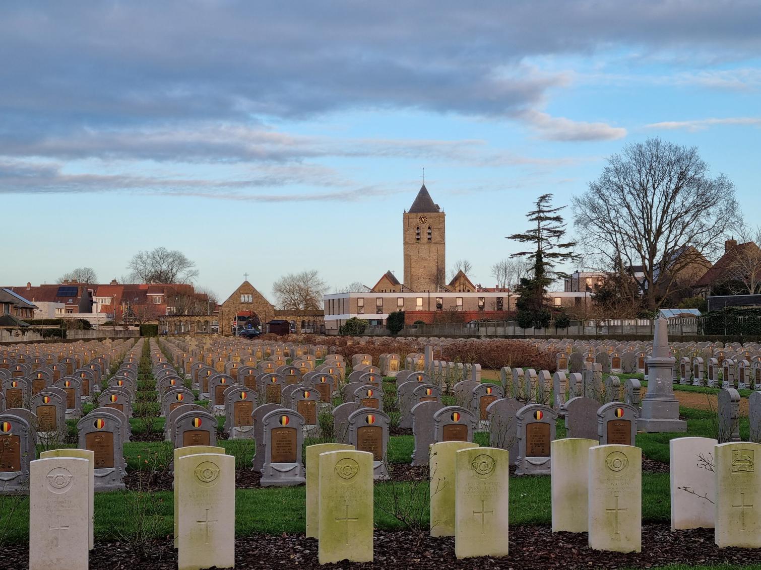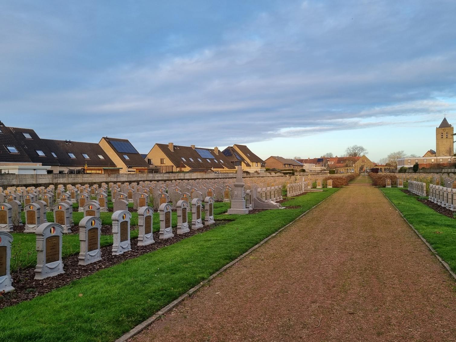 Dieser belgische Militärfriedhof wurde zu Beginn des Ersten Weltkriegs als Erweiterung des bestehenden Friedhofs angelegt. Viele Soldaten, die in den nahe gelegenen medizinischen Einrichtungen, wie dem belgischen Militärkrankenhaus Cabour in Adinkerke und dem Roten-Kreuz-Krankenhaus L'Océan in De Panne starben, sind hier begraben. Aber es liegen hier auch viele Soldaten, die in anderen Abschnitten der Eisernen Front gefallen sind. Auf dem Friedhof gibt es etwa 1650 belgische Gräber. Außerdem gibt es zwei britische Grabstätten.