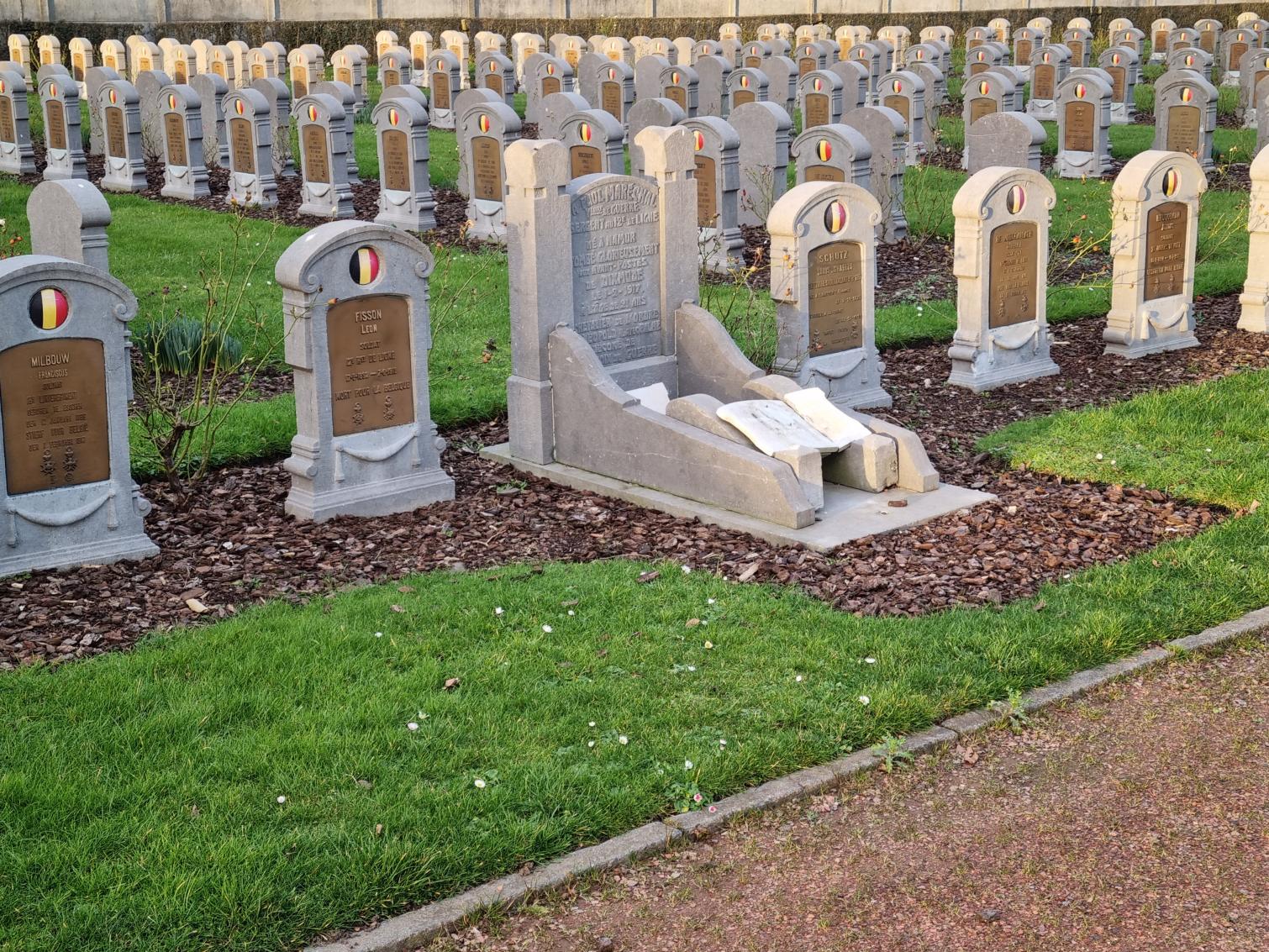 Im Jahr 1925 löste der Bau des Heldenwegs heftige Proteste aus. Auf Anordnung des damaligen Ministers für Nationale Verteidigung wurden etwa 140 Gedenktafeln zermahlen und mit rotem Ziegelstein vermischt, der als Fundament für den Weg verwendet wurde. Diese Grabschändung sei, so heißt es, der direkte Grund für die Errichtung des IJzer-Turms (Eisenturm) in Diksmuide gewesen. Auf dem Soldatenfriedhof befinden sich noch sechs Heldengedenktafeln.