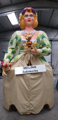 Melina, die Frau von Jan De Moerduivel, wurde von der Familie Florizoone in Auftrag gegeben und anlässlich des 1000-jährigen Bestehens von Adinkerke wurde sogar ein Meli-Park gebaut. Melina ist 4 m groß, eine vollbusige Frau mit blondem Haar, blauen Augen und roten Wangen. In ihrer linken Hand trägt sie immer eine Biene, das Maskottchen des ehemaligen Meli-Parks.