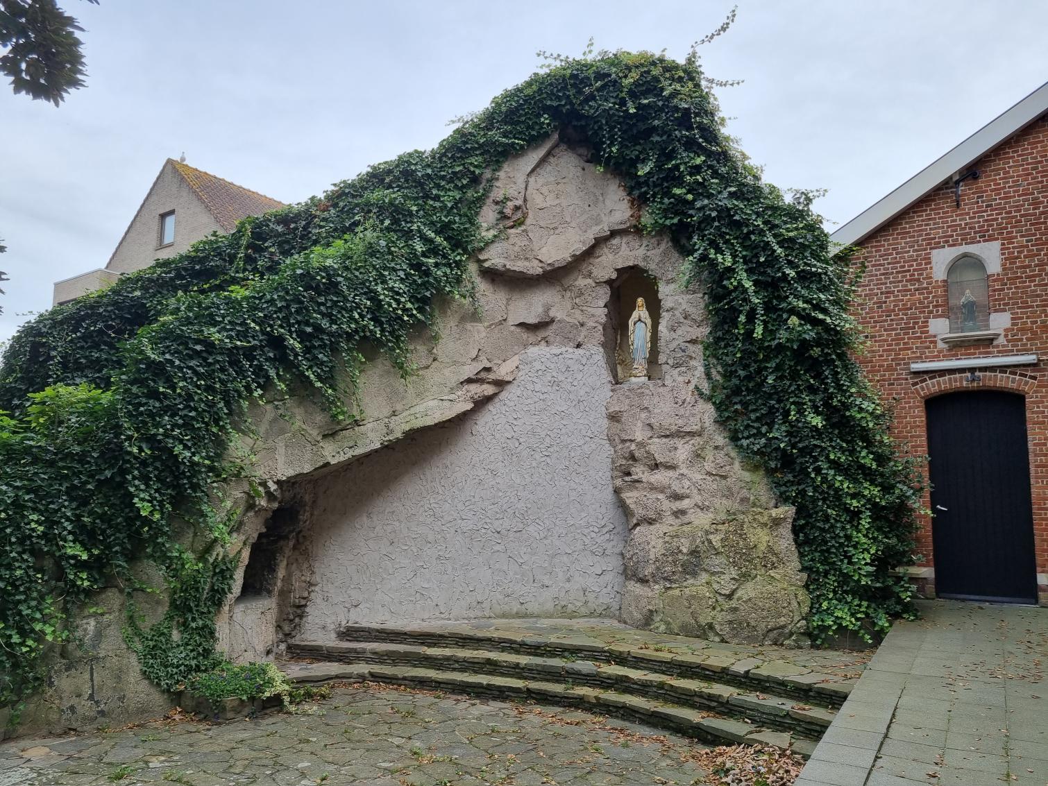 The neo-Gothic chapel was built first and then the monastery. The building consists of a brick neo-Gothic hall church with eight bays under a pitched roof, buttresses and an entrance portal. Above the entrance door, there is a tympanum with the image of the Belgian crown. In 1913, a choir was added to the existing building. Around 1925, a Lourdes grotto was built next to the chapel.