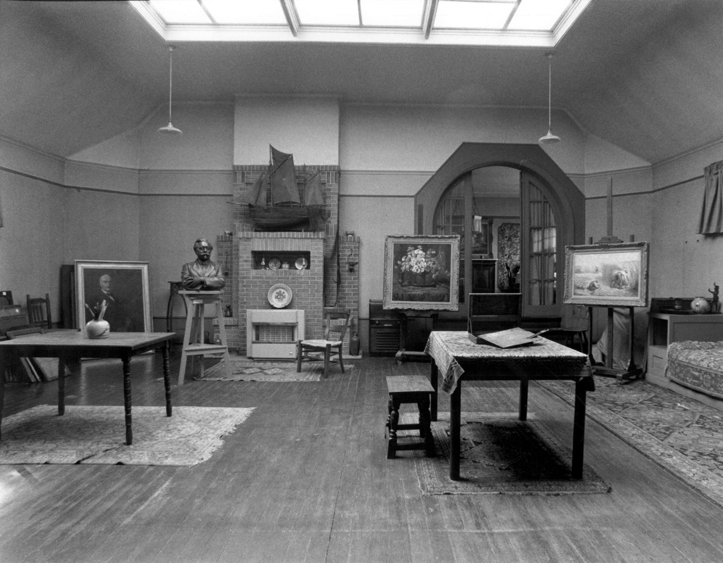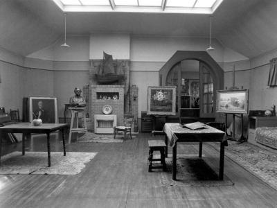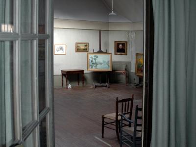 The largest part of the ground floor is occupied by the painter's octagonal studio. The spacious studio, with a large central ceiling window, is fully equipped to meet the artist's needs. Direct light is avoided by small windows on the east and west sides. The second half of the ground floor is higher and is home to the private rooms.