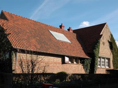 The villa is built in a regional-traditionalist brick architecture that references to an austere cottage style. The northern section is slightly lower but longer than the southern one, and has a protruding porch facade on the right side. This part is adapted to be a summer workshop. On the east and west sides of the central gable roof, the tiles have been left out to make way for large strips of glass, encased in metal to catch the zenithal light.
