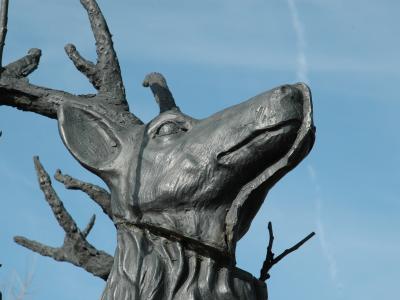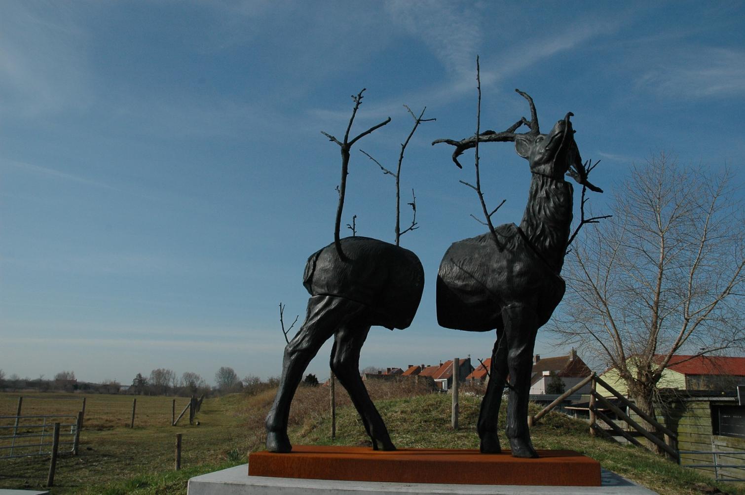 A life-size bronze red deer is on display at the Vijvers Markey in Adinkerke. The sculpture was made by Stief DeSmet, whose work often balances on the edge of where nature meets culture.