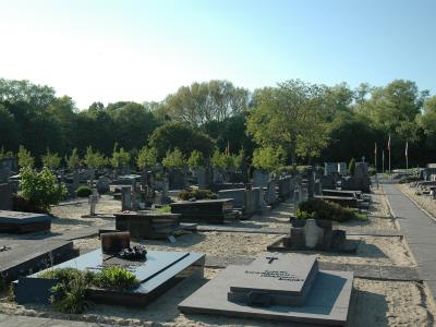 The monumental cemetery of De Panne consists of a military and a civilian section. It was built in 1918 in the middle of the dunes near ‘Moeder Lambik’ (Mother Lambik). The land belonged to the Calmeyn family and was expropriated by order of the Minister of National Defence. Both cemeteries were designed by architect Eugène Dhuicque, who worked at the front line during the war at the so-called Mission du Ministère des Sciences et des Arts.