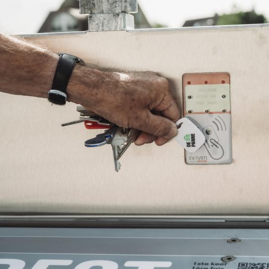 - Je vraagt de sleutelbadge aan via https://depanne.recytix.cloud