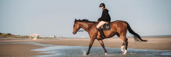 Voor je opstijgt, check even de getijden, en vermijd galopperen in het water. Dat ziet er leuk uit, maar paarden kunnen onmogelijk putten onder water zien. In het zomerseizoen zijn bepaalde zones verboden, dus let goed op de informatieborden die bij iedere strandingang staan.