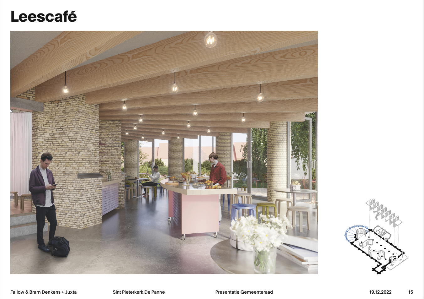 Beleef nu alvast de nieuwe bibliotheek: gooi een blik op de ontwerpen of neem een duik in de plannen. Bekijk het ontwerp Sort by Authored on Name File size Volgorde Asc Desc Download de plannenDe finale plannen werden voorgesteld op de gemeenteraad van 19/12/2022. Download de plannen voor de nieuwe bibliotheek (22.42 MB) "pdf" Team Facility Adres Zeelaan 21 8660 De Panne België E-mailadres facility@depanne.be Telefoon 058 42 89 33
