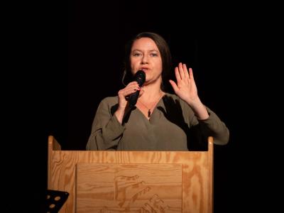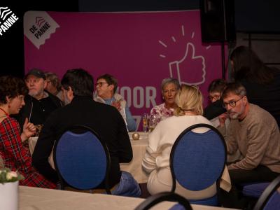 Na de verwelkoming en bedanking door Michèle Vandermeeren, schepen van Samenleven & Toegankelijkheid, en burgemeester Wim Janssens volgde een feestelijke receptie met een hapje, een drankje en muziek van Les Mobylettes.