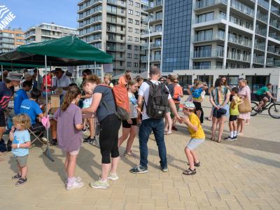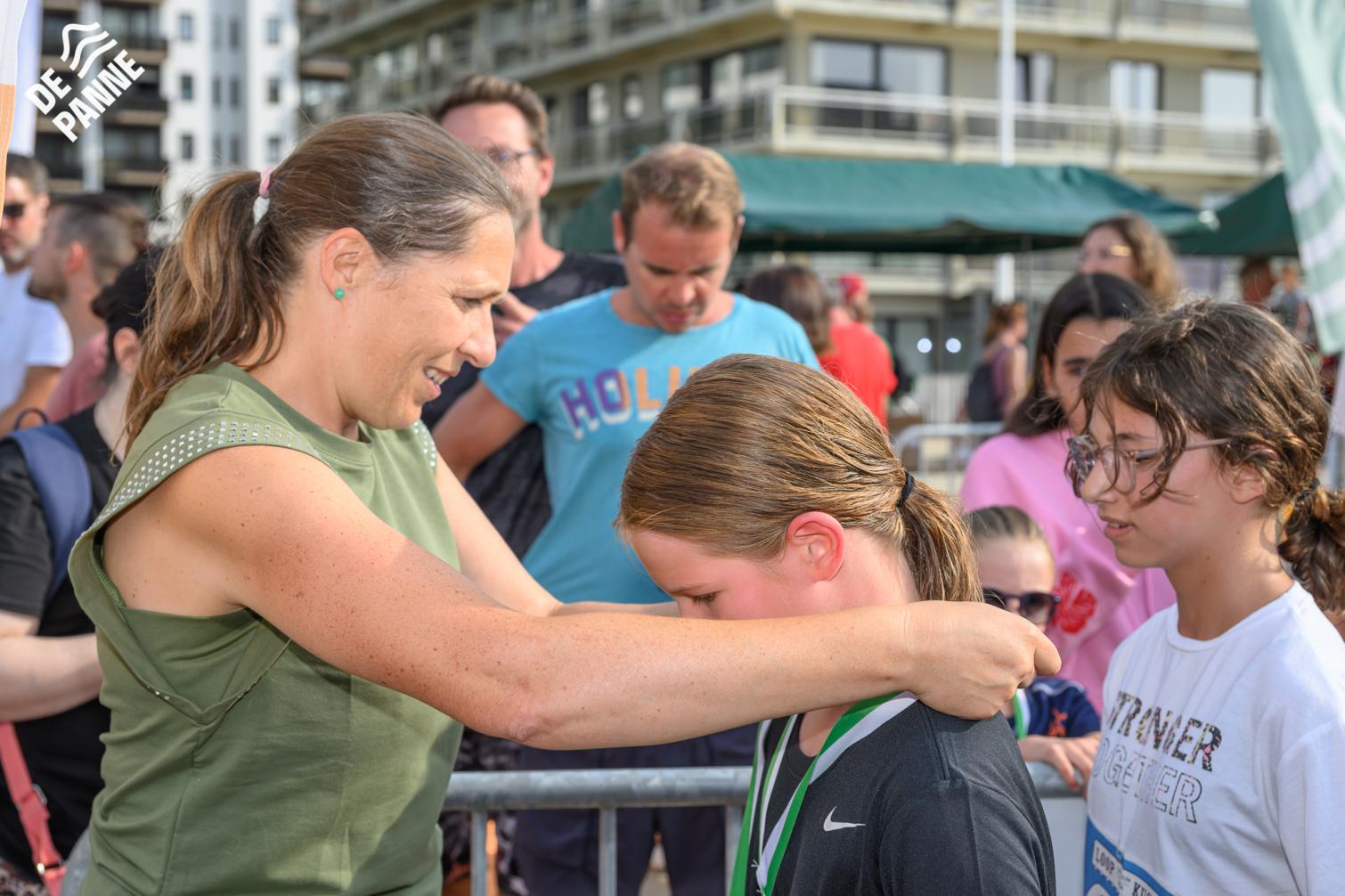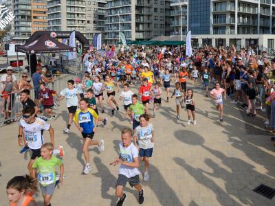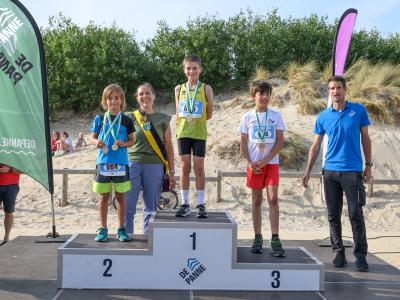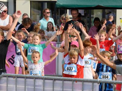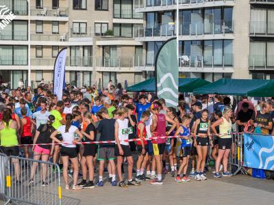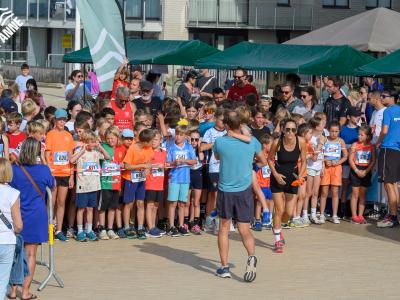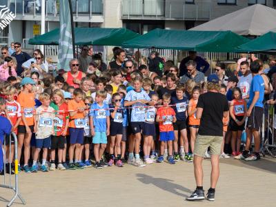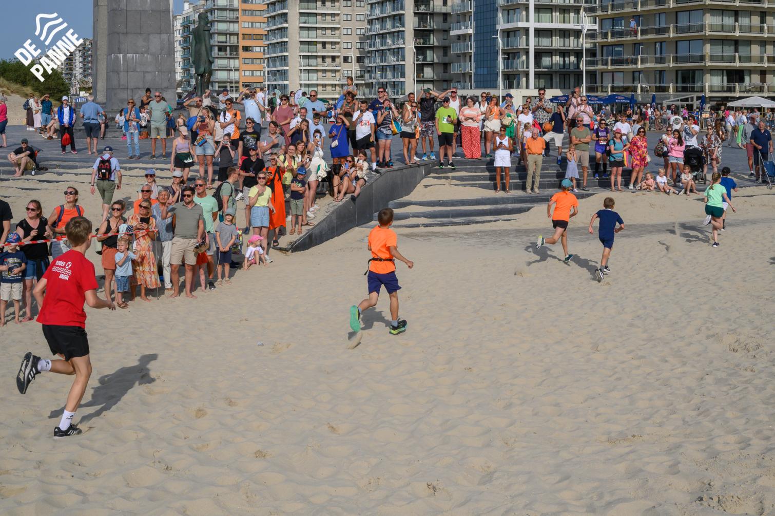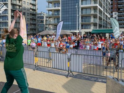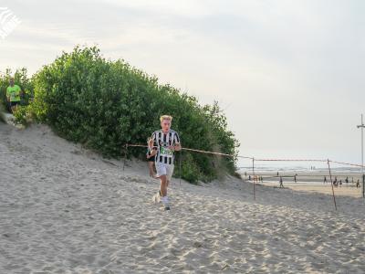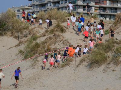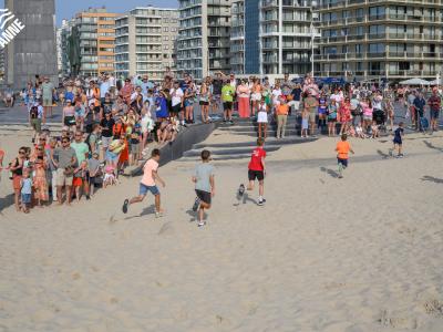 Voor de volwassenen aan de start verschenen, werden om 18.30u meer dan 150 enthousiaste kinderen op het strand losgelaten. Dankzij de leuke muzikale opwarming haalden de deelnemers vlot de finish van de toch wel pittige 1 kilometer lange wedstrijd.