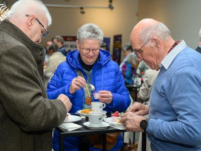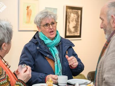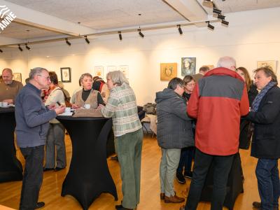 De bezoekers genoten tijdens de opening niet alleen van de kunst, maar ook van een heerlijke koffie en een stukje taart. 🍰