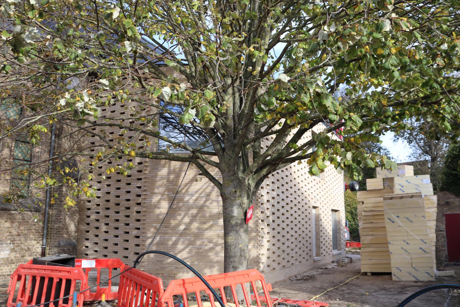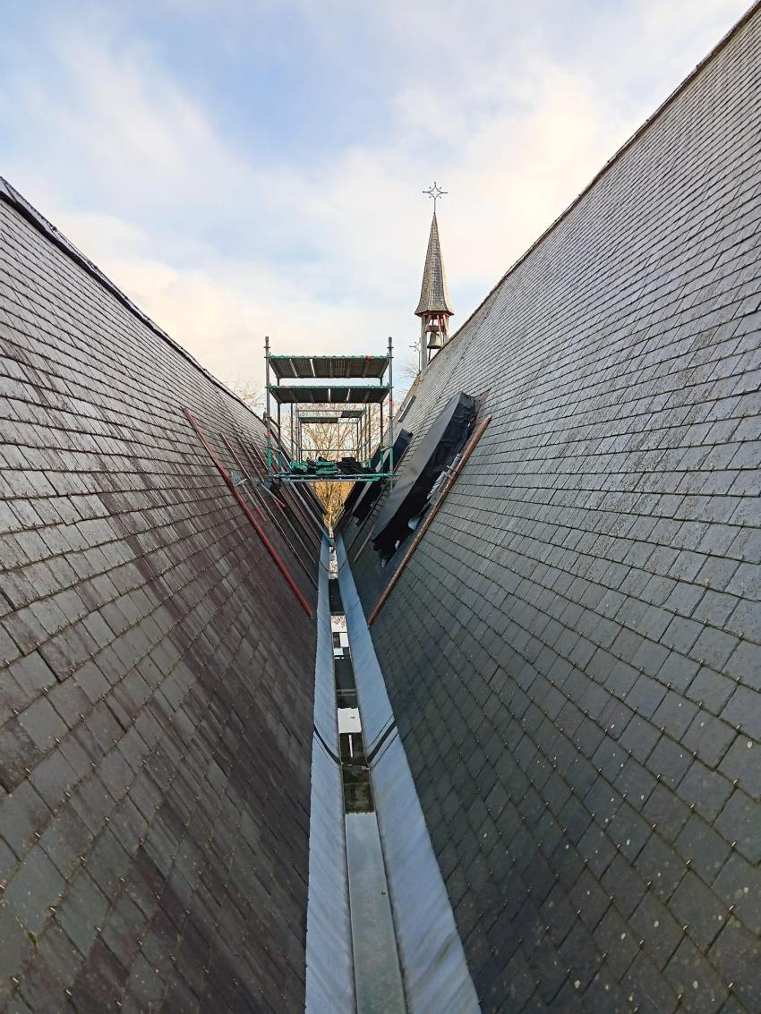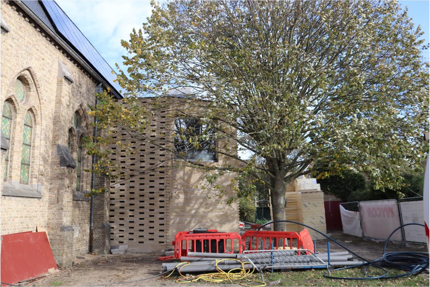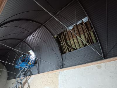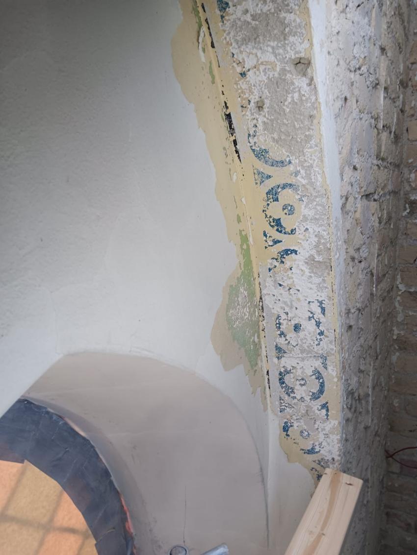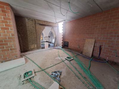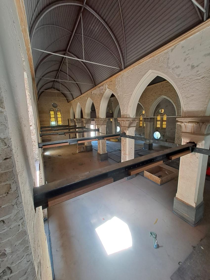 - Binnenin zijn de vlakke pleisterwerken in de kerk afgerond. De akoestische pleisterwerken op grotere hoogte volgen na nieuwjaar.