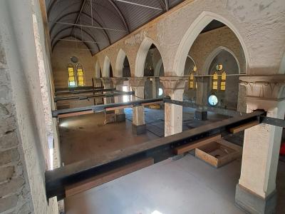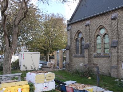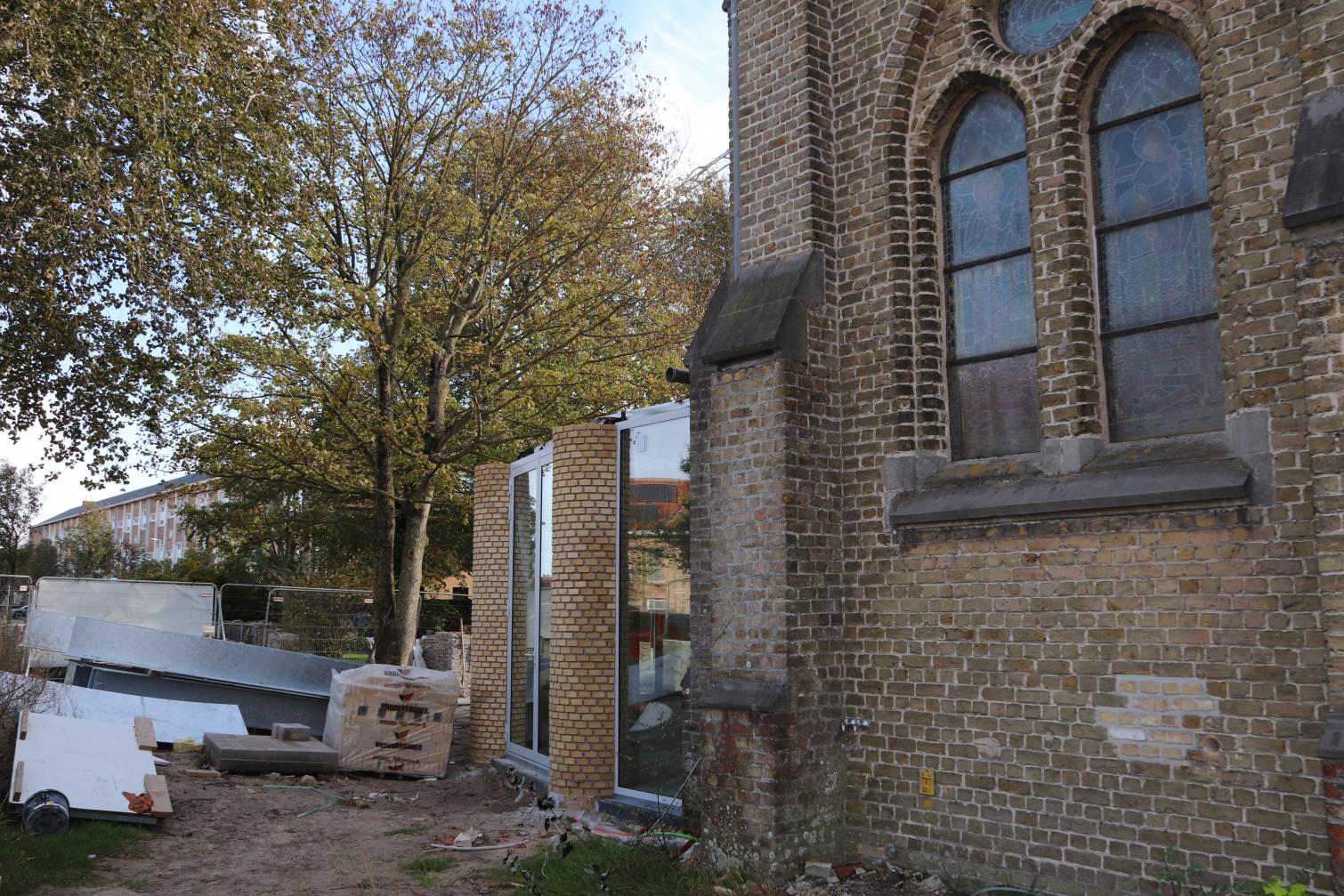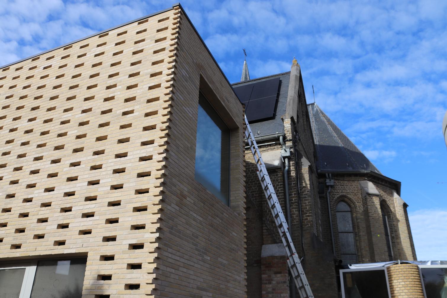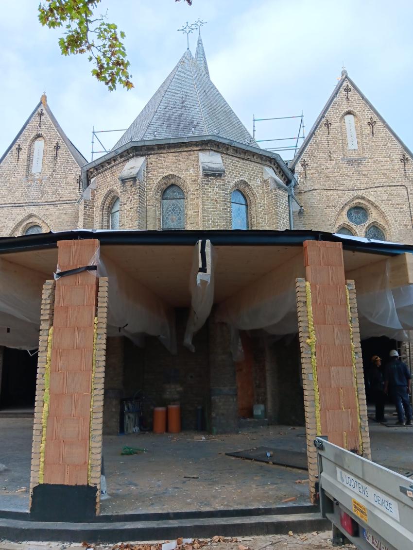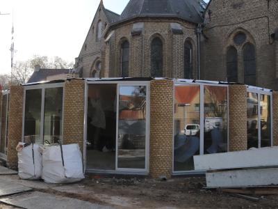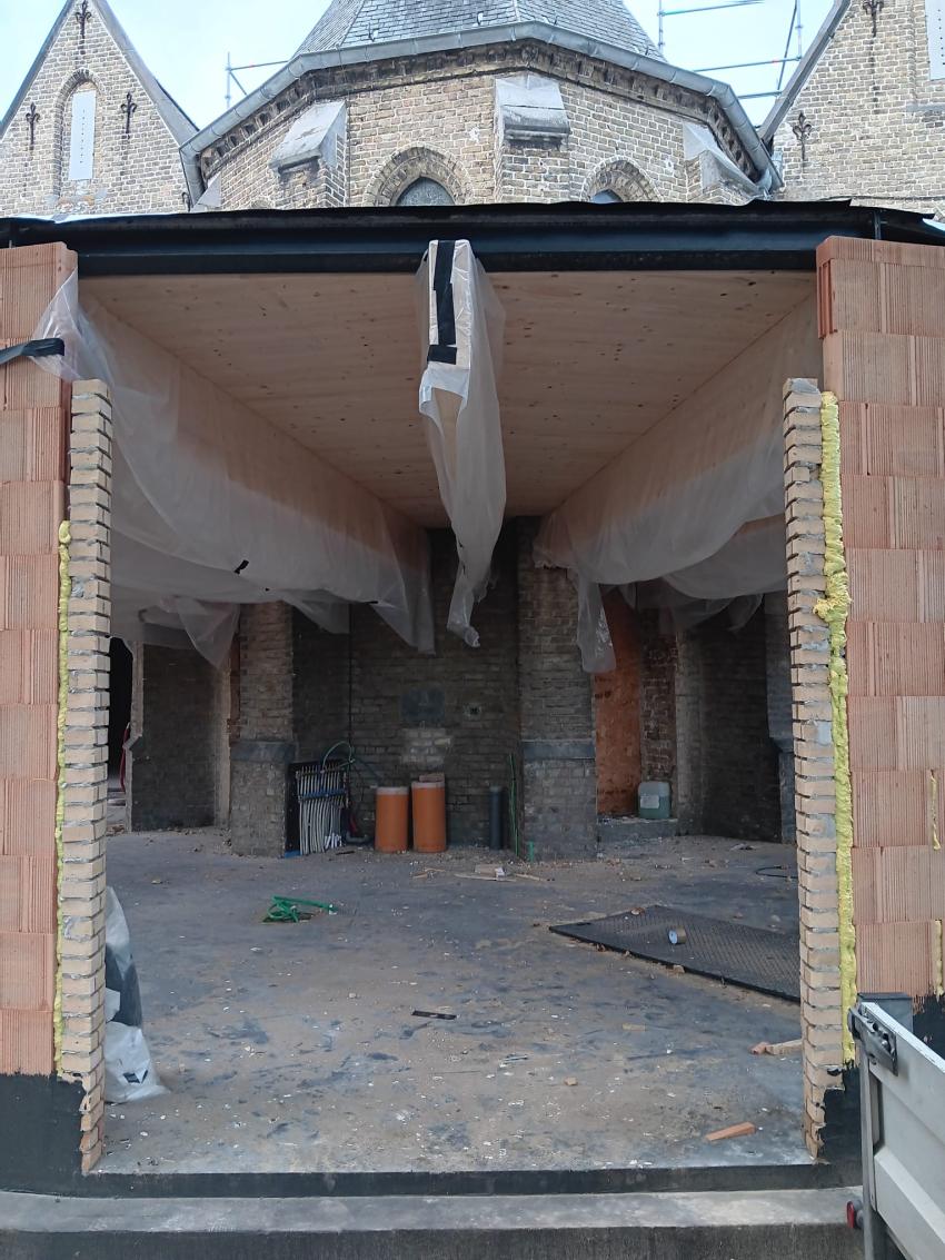 - Daarna start ook de vloerafwerking: ongeveer de helft van de vloertegels wordt gerecupereerd uit de oude kerkvloer, aangevuld met nieuwe tegels. De plaatsing daarvan is voorzien tegen eind januari.