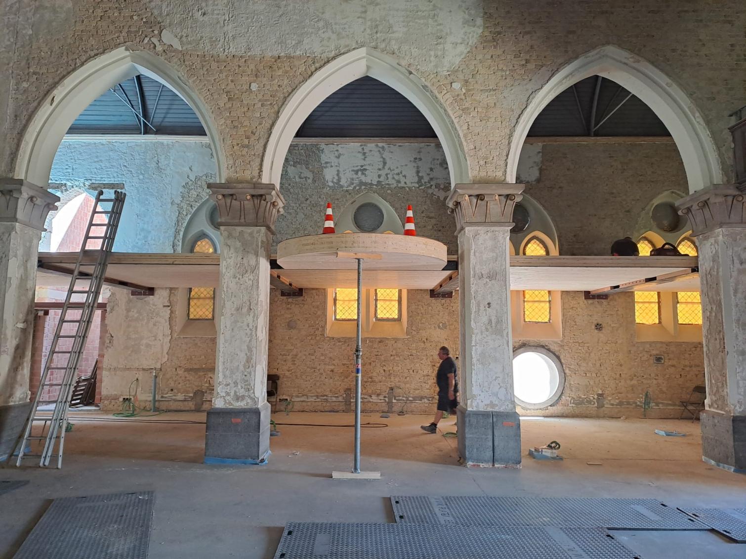 In de noord- en middenbeuk is de centrale gordijnrail geplaatst. Die rail maakt het mogelijk om de ruimtes later flexibel op te delen.