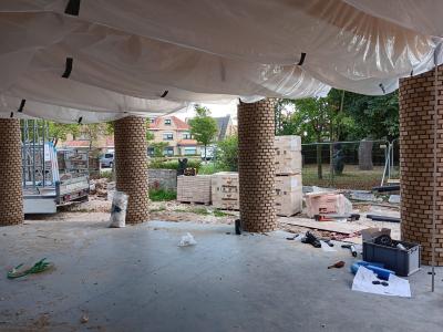 - Ook buiten zijn de eerste veranderingen zichtbaar. In december starten de werken aan de riolering en de aanleg van de regenwaterput.