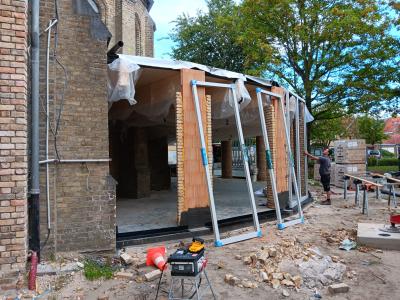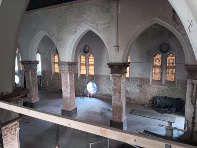 - Daarnaast wordt er verder gewerkt aan het doksaal. Op de plaats waar vroeger het orgel stond, komt een studeerplek voor jongeren.