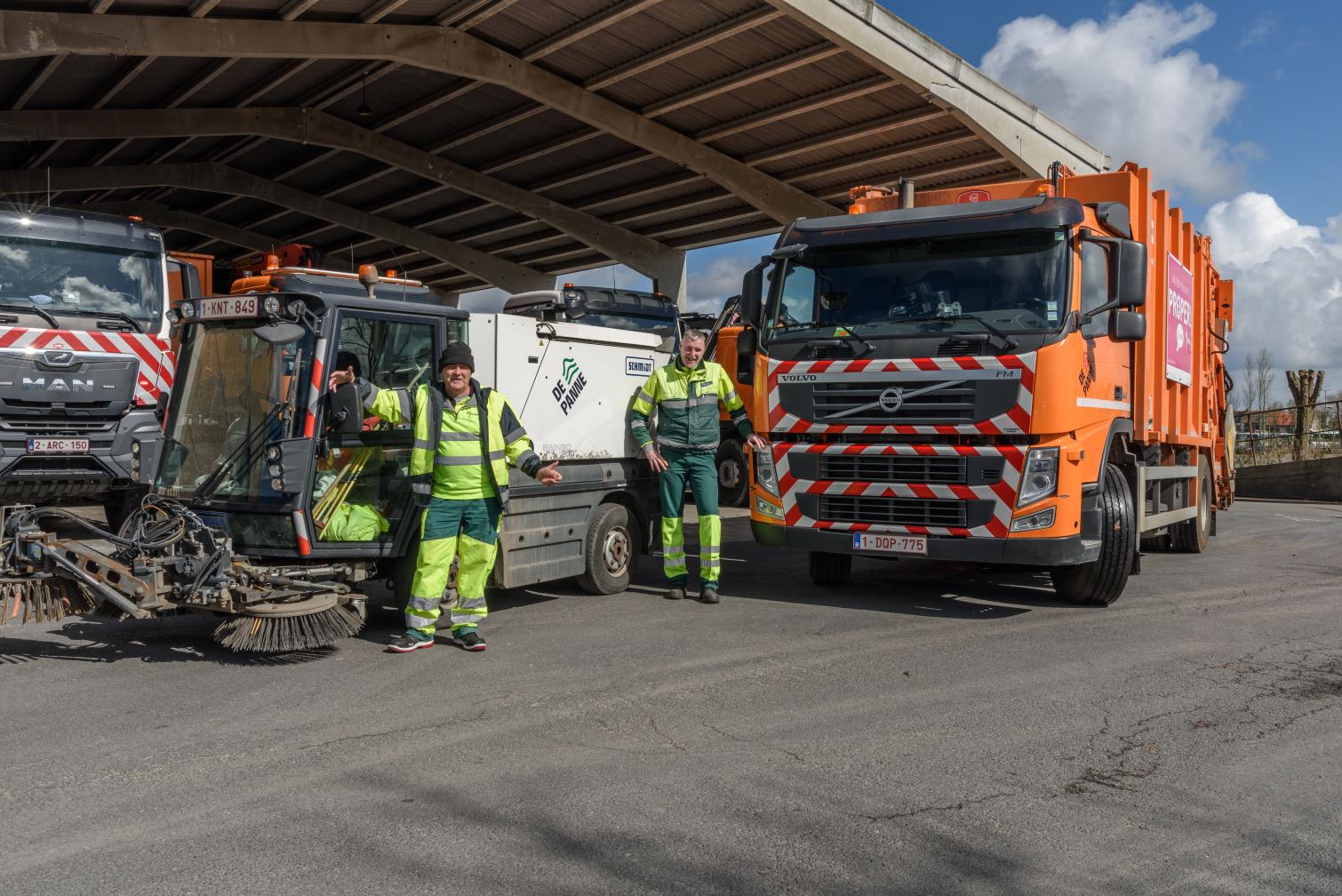 Enkel en alleen met de vuilniskar verzamelen deze mannen op jaarbasis verzamelen zo'n 2.420.000 kilogram afval uit onze gemeente. Met 2 kuismachines en een dosis mankracht zijn ze ook dagelijks in de straten te vinden om de strijd aan te gaan tegen rondzwervend afval. Niets ontsnapt aan hun ogen! Er dat is ook nodig want zwerfvuil vergaat trager dan je denkt. Zo heeft een bananenschil 1 jaar nodig om te verwerken. Een sigarettenpeuk tot 15 jaar, een kauwgom 25 jaar, een blikje 50 jaar en een Petfles zelfs oneindig veel tijd.