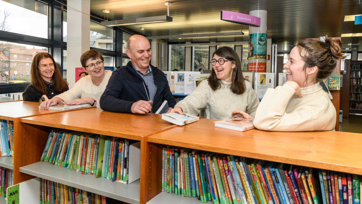 Als je binnenstapt in de bib van De Panne mag je rekenen op een warm onthaal door dit vijfkoppige team.