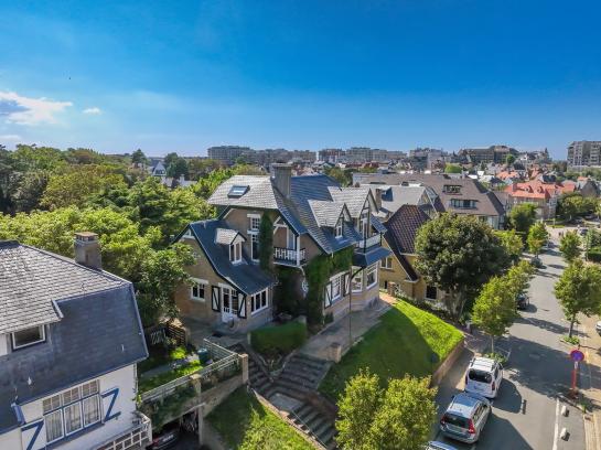 De typische cottagestijl is hier terug te vinden in het gebruik van het karakteristieke dakenspel, het beschilderde houtwerk en het pseudo-vakwerk. Verder valt op dat elke gevel op een andere manier is uitgewerkt, want uniformiteit en ééntonigheid zijn allesbehalve kenmerkend voor de cottagearchitectuur. Dit zorgt voor een ingewikkeld en onregelmatig volume dat verkregen wordt door het gebruik van verschillende soorten vensters en het spel van de in- en uitspringende muurpartijen en afgestompte hoeken.