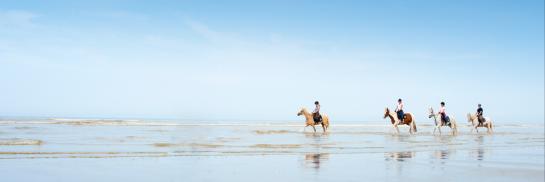 Zet je schrap in het zadel en laat je verbazen! Het strand, de bossen en het achterland hebben heel wat te bieden voor paard én ruiter! Ontdek adembenemende ruiterroutes doorheen ditto landschappen. De wind in je haren terwijl je door de branding galoppeert ... niets is mooier, toch?